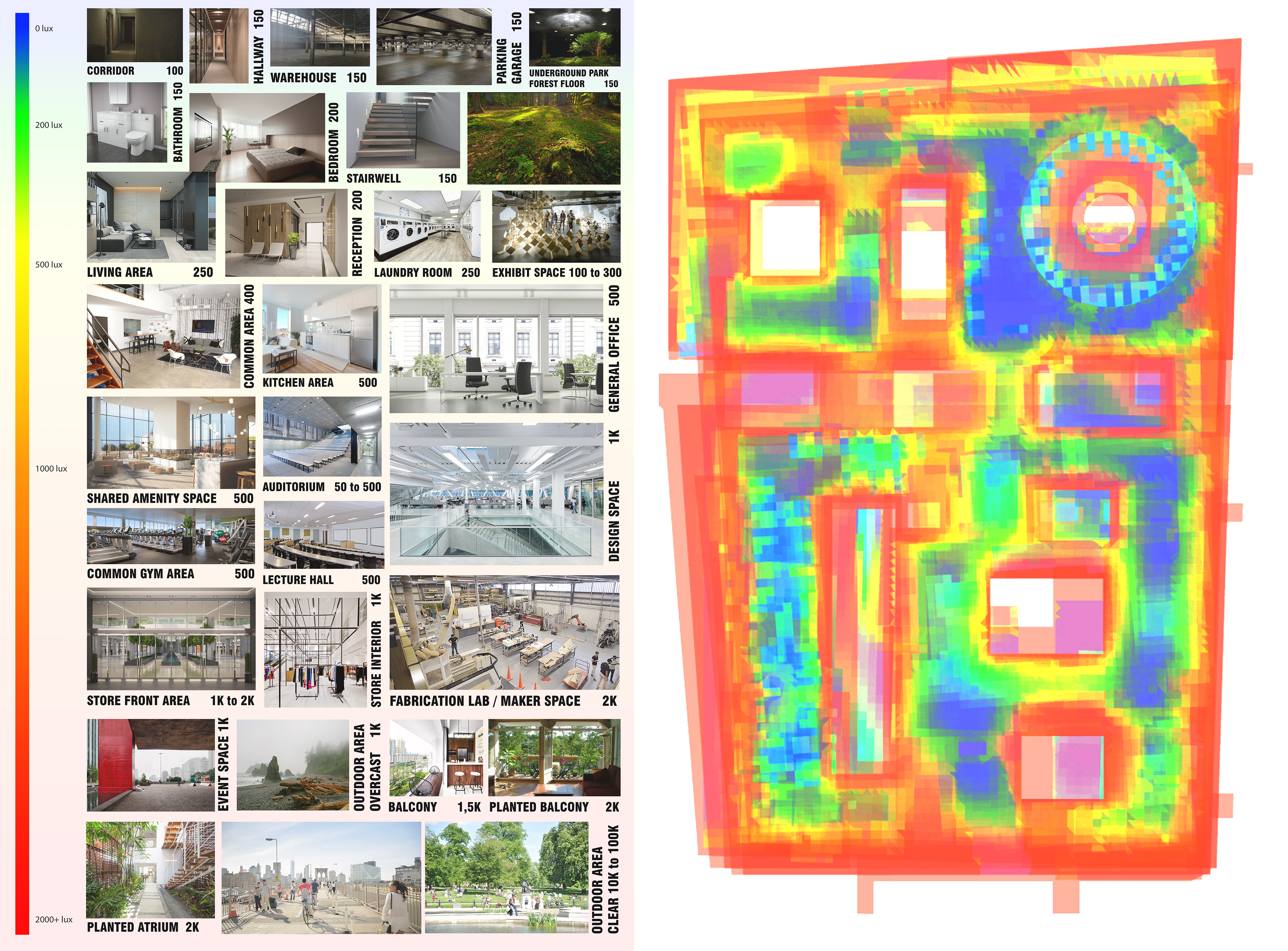 Studies | Ongoing Mixity structural design, lighting analysis, color analysis of potential largescale proposals Environmental Analysis studies of Net Zero Energy Design for NYC office building and Lighting Studies of Peter Zumthor's Therme Vals