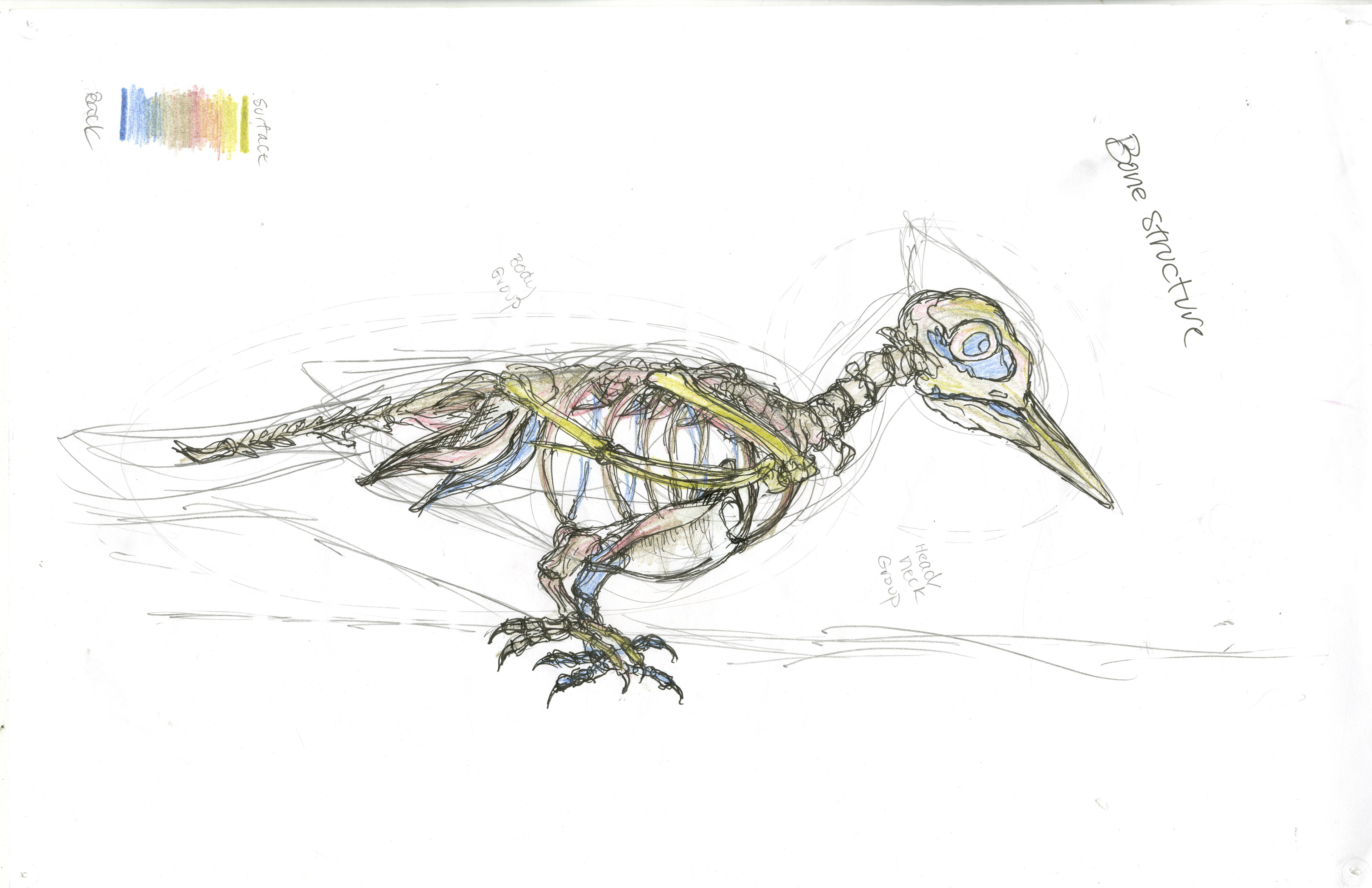 Cornell First Semester Studio: Study of the woodpecker as a precedent for an instrument, production of instrument and exploration of materials, utilization of instrument to generate and inhabit a site
