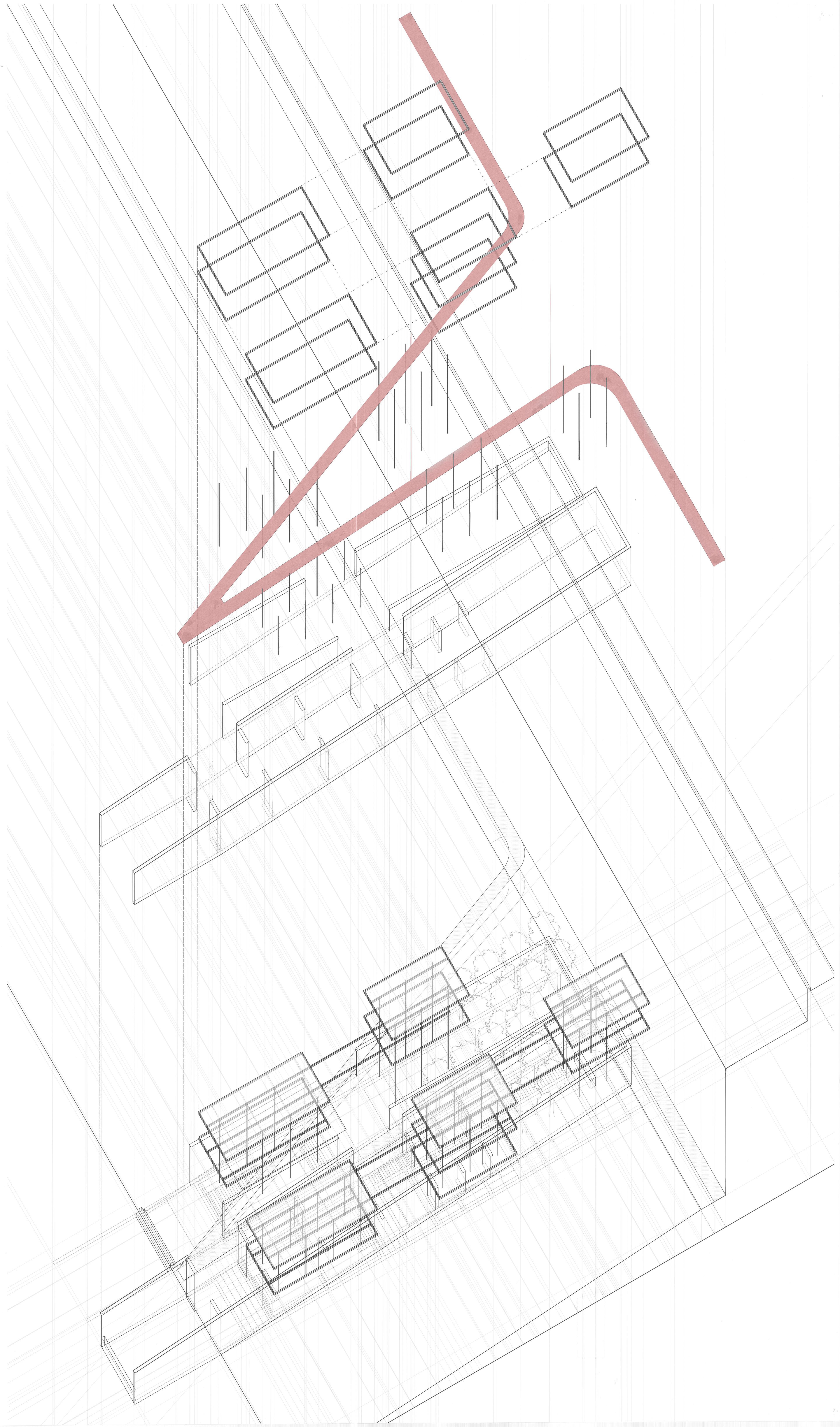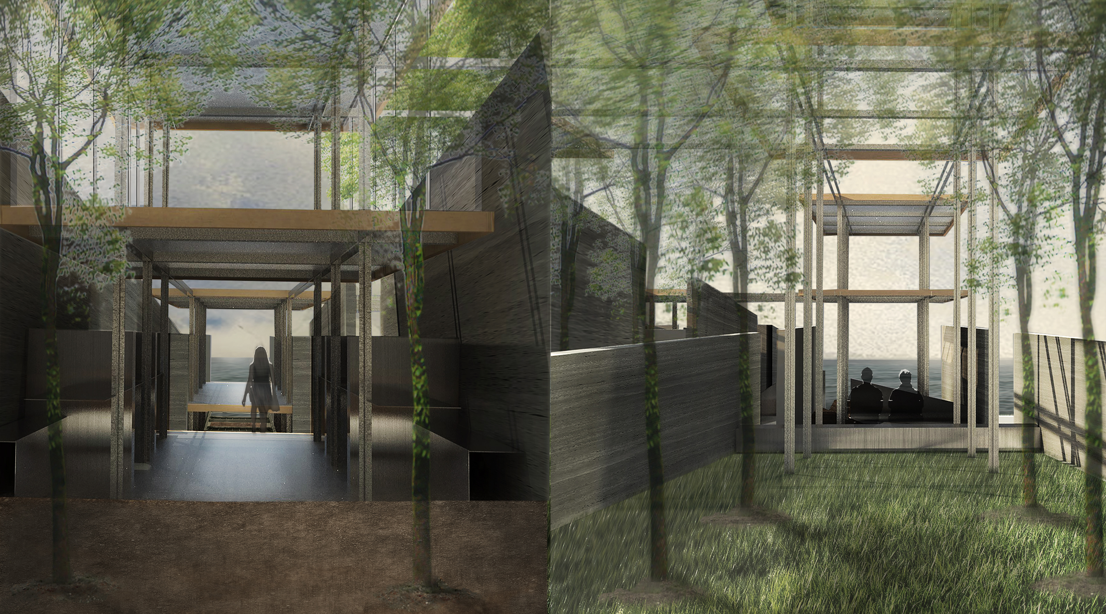Cornell Second Semester Studio: Study of Roman Domus and Smithson Solar Pavilion as precedents, hybridization into one unit-based system, multiplication to inhabit site as a family cemetery for ceremonies and events